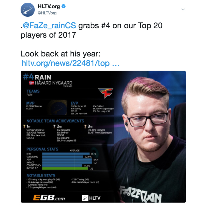 Joe Cardali (@tolkienfanatic) is the Co-owner of dust2us and a HLTV contributor. He re-tweets lots of useful posts and articles from all over the CS:GO scene. If you wish to know about all the goings-on in the world of Counter-Strike, following this account is definitely worthwhile. Using a range of sources also adds variety to the type of content posted.